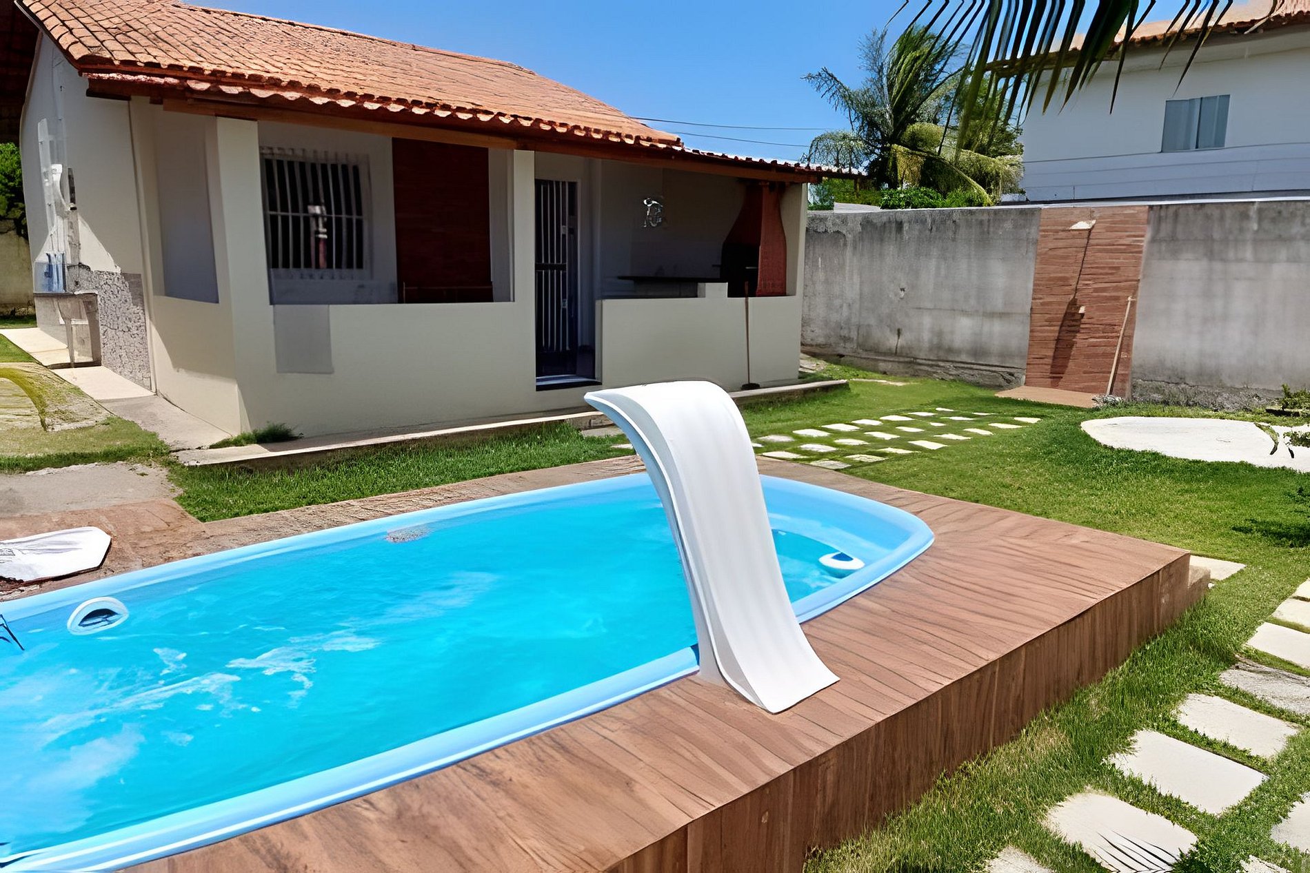 Relax with the whole family in this tranquil accommodation just a few meters from the beach. Located on Rua 17, North side. The house has a large backyard, a swimming pool with a waterfall, and is just a few meters from large supermarkets, bars, restaurants, and bakeries.