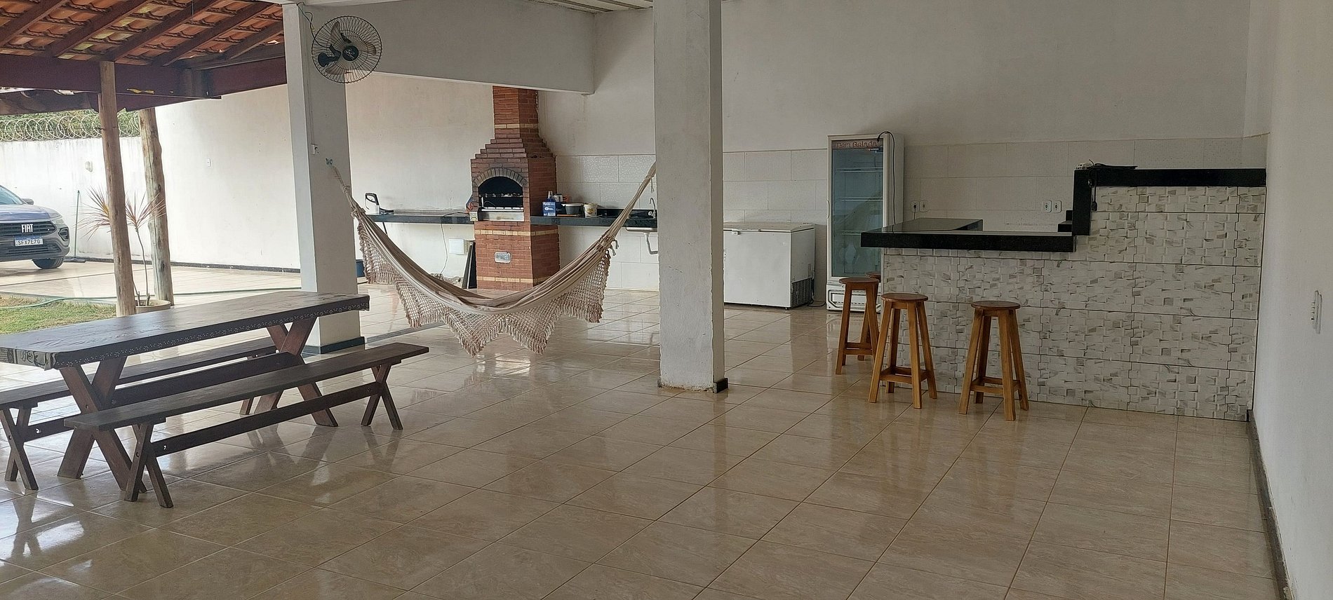 Nesta modalidade de locação os hóspdes terão acesso a todo o primeiro pavimento que conta com ampla área de lazer, dois banheiros ( masculino e femenino), ambos com chuveiros, área de churrasco, cozinha completa e piscina.